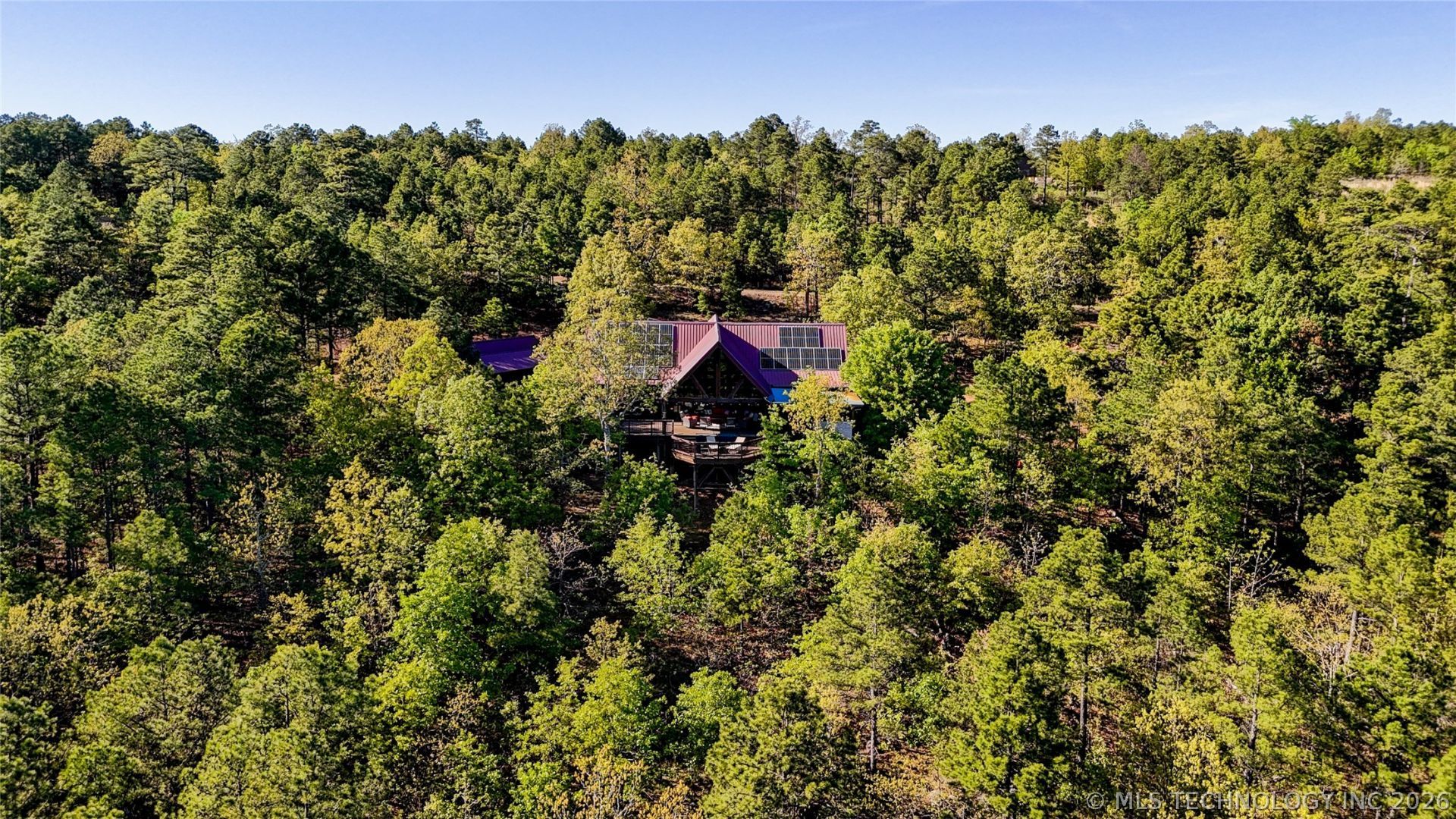 Soak in peace and million-dollar views of Sardis Lake from this breathtaking mountain cabin. Perched on a hillside with sweeping panoramic vistas, every guest pauses in awe upon arrival. Just minutes from Sardis Lake-and within easy reach of Dallas, Oklahoma City, Tulsa, and Broken Bow-this property is a rare retreat. A full wall of windows invites the outdoors in, blending indoor and outdoor living seamlessly. The expansive covered deck, complete with an outdoor kitchen, creates the perfect setting to relax, entertain, and take in the beauty of the surrounding landscape. The main bedroom features a beautifully remodeled shower and expansive closet with thoughtfully placed laundry. A walk-through mudroom offers flexible workspace, abundant storage, and utility space. The second bedroom and guest bath can be sectioned off for added privacy. A versatile 24x32 garage provides ideal space for a workshop, while the charming guest house-featuring two bedrooms and a full bath-offers comfort and privacy for visitors. Enjoy peace of mind with a 10 kW solar system, a ground-level storm shelter, and included security and Blink camera systems. Nature lovers will appreciate frequent sightings of roadrunners, deer, eagles, wild turkey, and even the occasional fox. Birdwatchers can enjoy year-round viewing, with 39 species already documented. Beyond the property, explore nearby lakes including Sardis, Wister, Cedar, Clayton, Atoka Reservoir, and McGee Creek. Hiking opportunities abound in the Winding Stair National Forest just 30 minutes away, or closer to home along Saddle Gap trails. Guests often say the same thing: 'I feel so relaxed. If that's what you're looking for, this is a place you'll treasure.